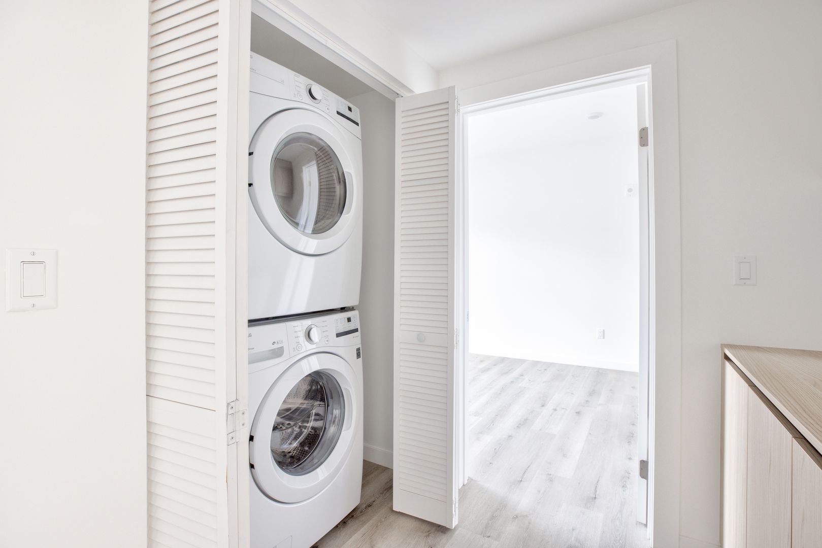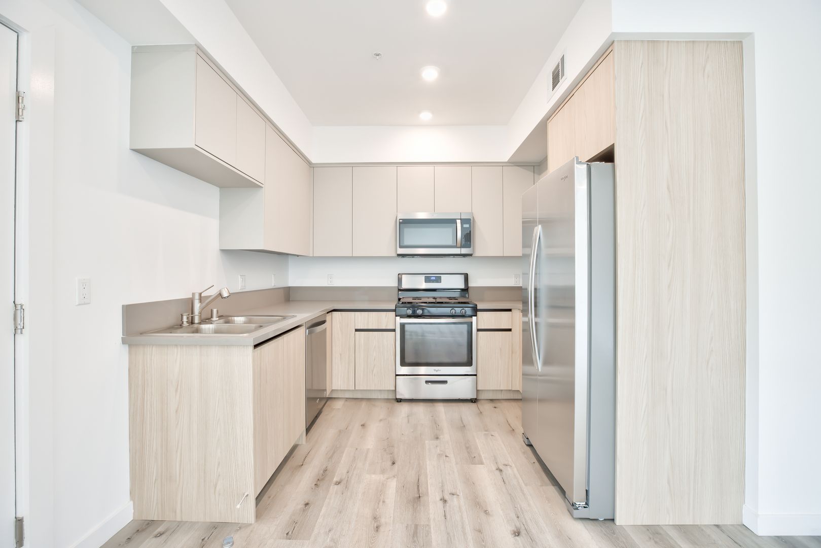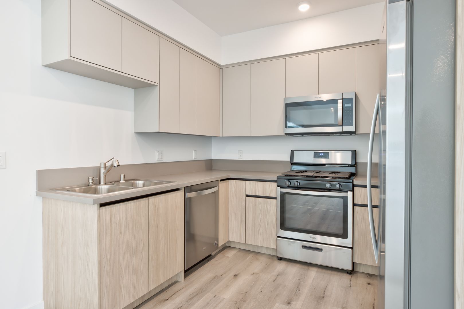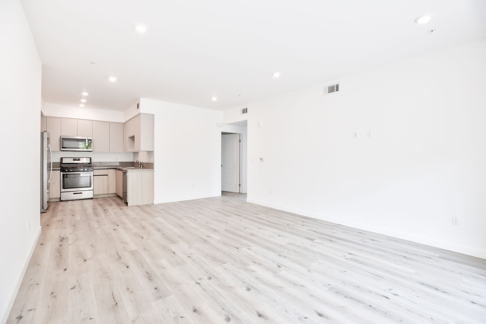 Our apartments offer you a modern and spacious layout to create a comfortable atmosphere, the living area features high ceilings and wood-like vinyl flooring. The open kitchen includes quartz countertops, and plenty of storage in the cabinetry. Stainless steel appliances Included are the stove, dishwasher, and microwave, every unit included a washer and dryer.