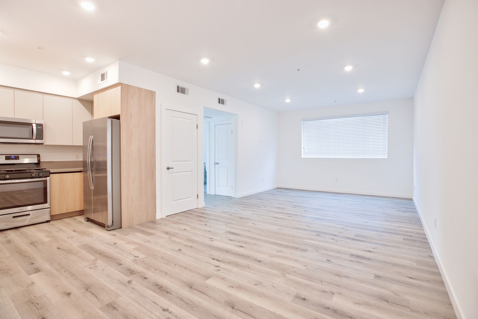 This unit has central heating and air conditioning, a private balcony (in select units), and recessed lighting all throughout.